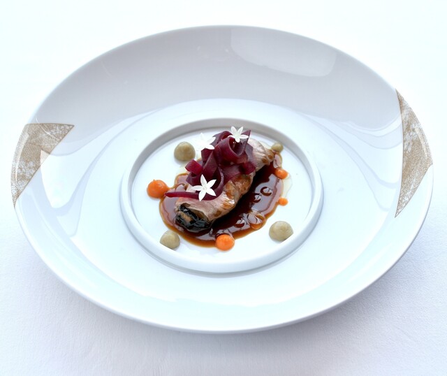 伝統のスペシャリテをはじめとする最高峰のフランス料理は、どれもエーベルラン一家の温かい人柄が表現された優しく深みのある味わいを持つ料理ばかり。日本の統括シェフを任されている中廣太一シェフもまた、マルク氏と親子のように意気投合する関係。エーベルラン一家の温かみ溢れる味わいを表現できるのも、この関係があってこそ。