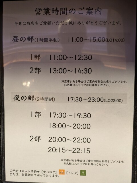 L.O. 料理22:00 ドリンク22:30