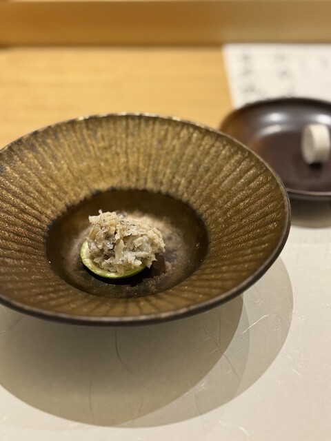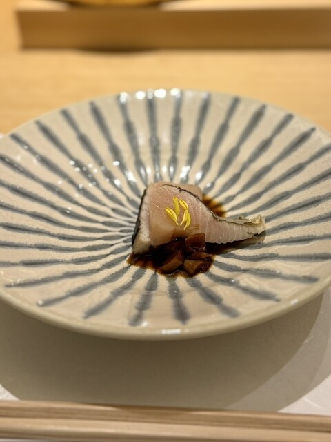 鮨職人として名古屋で長年活躍してきた大将の城間氏が2023年春、独立。これまでの集大成を、本格和食・鮨・炭火焼き上げの3つを軸としたコースで披露しています。一番おいしい瞬間で供される握りの旨さは感動モノ!