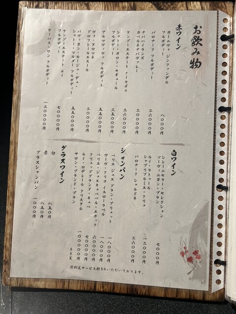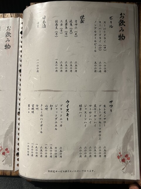 サービス料5% お席は2時間制でございます