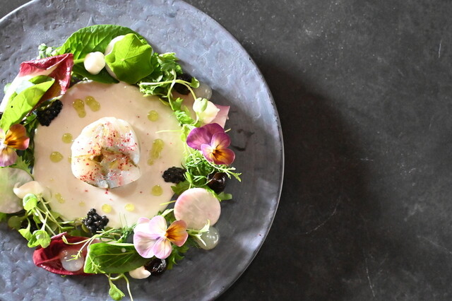 発酵バターや麹、乳酸発酵系の野菜など発酵調味料を使用し、意想外な料理を提供。イタリアで培った経験と日本古来の発酵を融合させ、調味料から自家製にこだわっている。