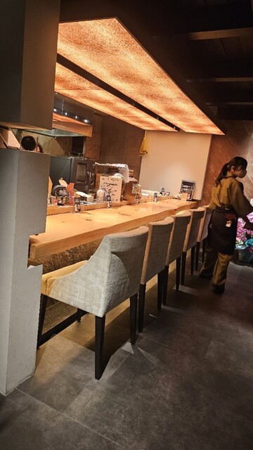 伝統とスタイリッシュさが融合した和空間で、ゆったりとお食事をご堪能いただけます。お席は、五感で愉しめるカウンター6席や、4名様掛けBOX席のご用意あり。4名様から最大18名様までご利用可能な完全個室もございます。接待などの大切なビジネスシーンはもちろん、記念日やお顔合わせなどハレの日のお食事にもぜひご利用ください。その他、各種宴会や会食にも相応しい落ち着きのある上質な空間をご提供しております。