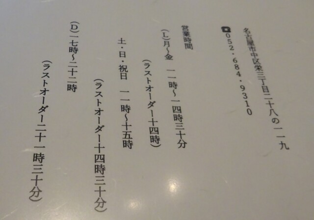 L.O. 料理21:00 ドリンク21:30