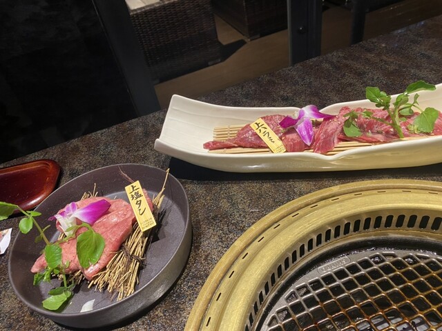 ブース席あり テラス付き個室あり 2022年よりディナータイムのみ 個室指定料として1室2000円いただいております。 無煙ロースターの焼肉テーブル 22:30(close)21:00(last) 個室は全て2階フロアにございます。階段での昇降となりますので予めご了承ください。
