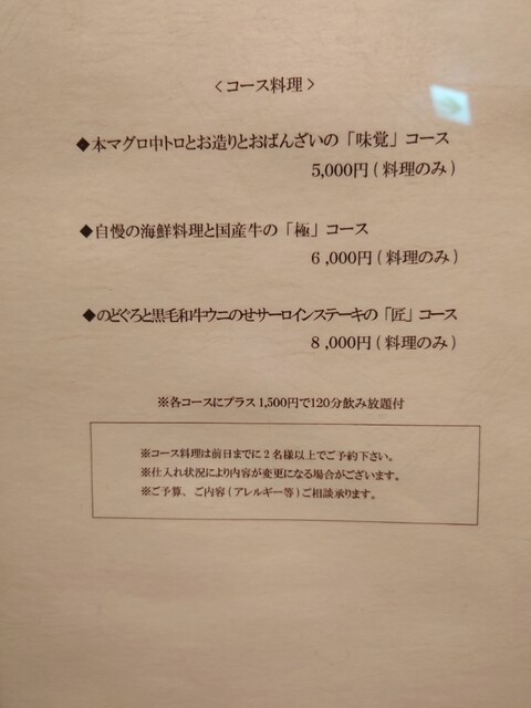 94席(カウンター席8席、テーブル席3卓、個室6室、VIP個室7室)