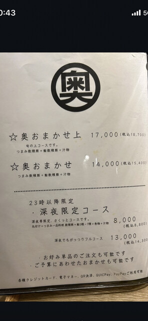 カード可(VISA、Master、JCB、AMEX、Diners、UnionPay)