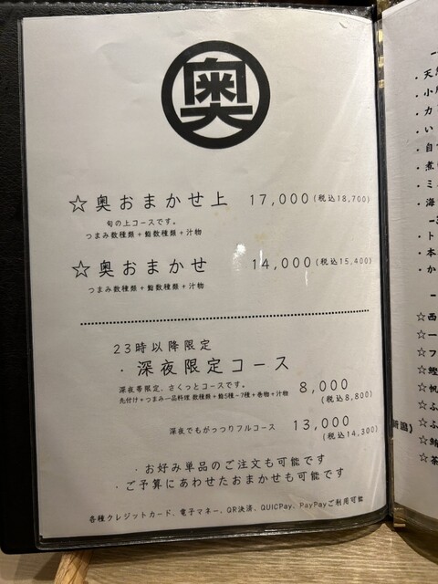 カード可(VISA、Master、JCB、AMEX、Diners、UnionPay)