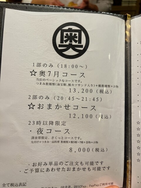 カード可(VISA、Master、JCB、AMEX、Diners、UnionPay)