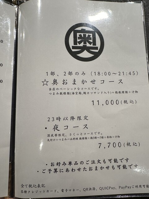 カード可(VISA、Master、JCB、AMEX、Diners、UnionPay)