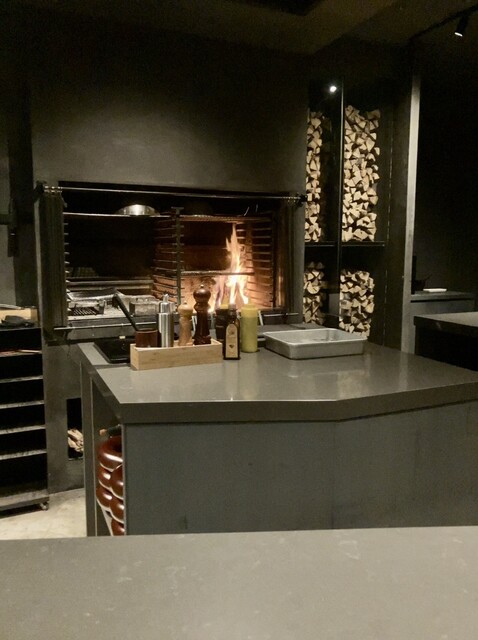 薪の炎やシェフの所作を眺めながらカウンターでライブ感と料理を楽しむ醍醐味