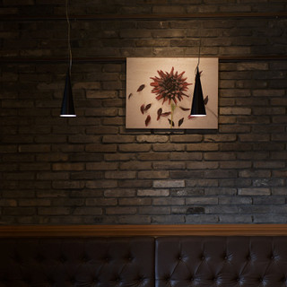 ナチュラルな空間が織り成す癒しの空間です。お客様がお食事をリラックスしてお召し上がりいただけるようインテリアには自然な色調を精選しました。全体的に茶色を基調としながらも、レンガの壁や木の床・週ごとに変わるお花など温かみがあり安心できる雰囲気を演出してます。ごゆっくりお食事いただけます。
