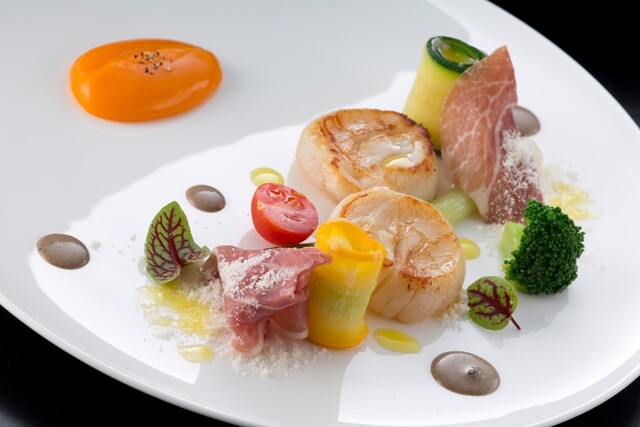 高知県の契約農家から送られてくる朝採れの野菜、シェフが毎朝柳橋の中央市場で選び抜く鮮魚、そして信頼ある精肉店から届く、旬の一番の素材を使ったお料理が自慢の一つです。