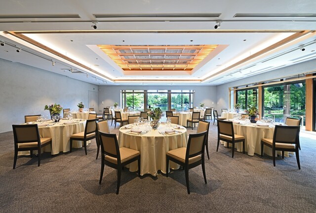 平日ディナー限定で別邸「蘇山荘」を個室(4~8名)としてご用意しております。 併設しているバンケット会場「ガーデンホール」では着席で最大100名様までご利用いただけます。