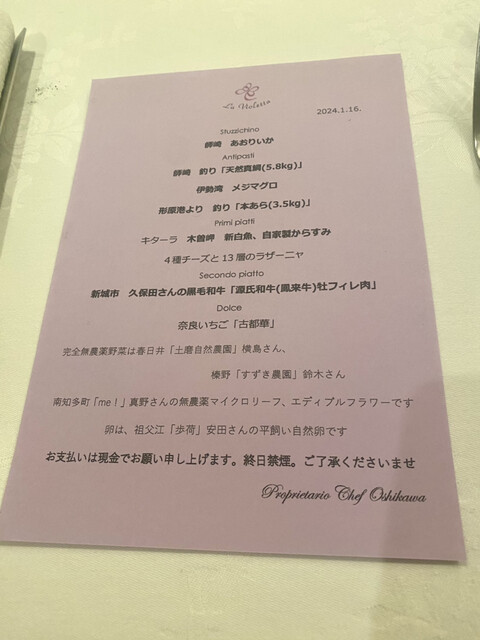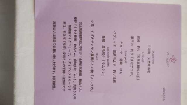 Speciale、ラヴィオレッタコースは、クレジットカード対応させていただきます。