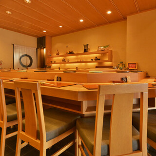 職人の技を間近に感じるカウンター席と、会食に最適なテーブル席