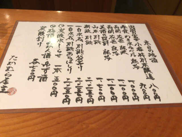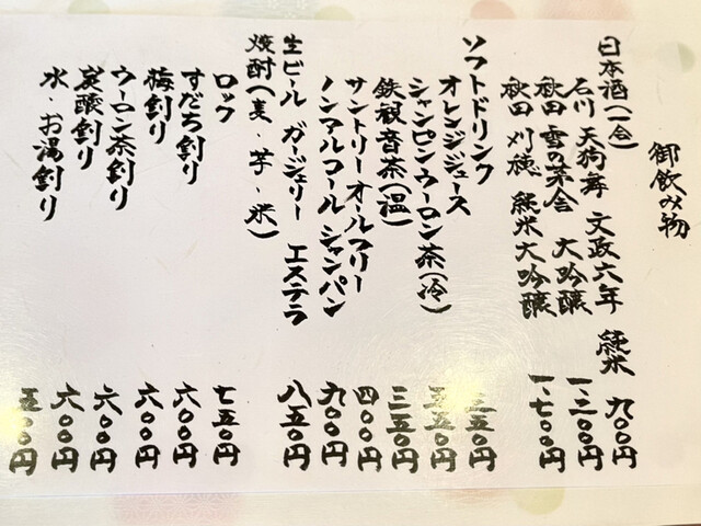 13席(カウンター7席、堀炬燵6人掛け1席)