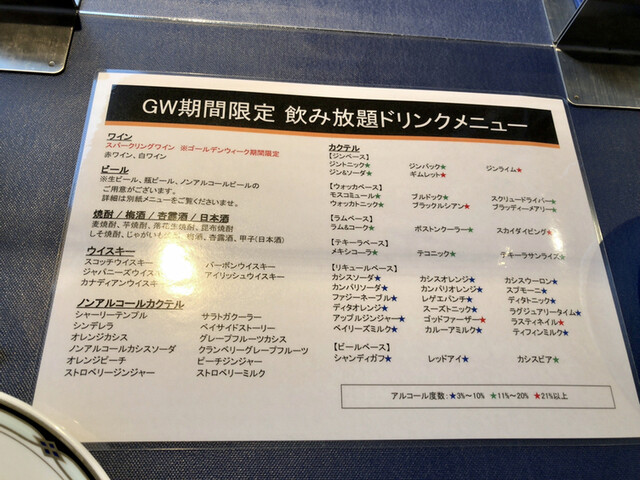 L.O. 料理22:00 ドリンク23:00