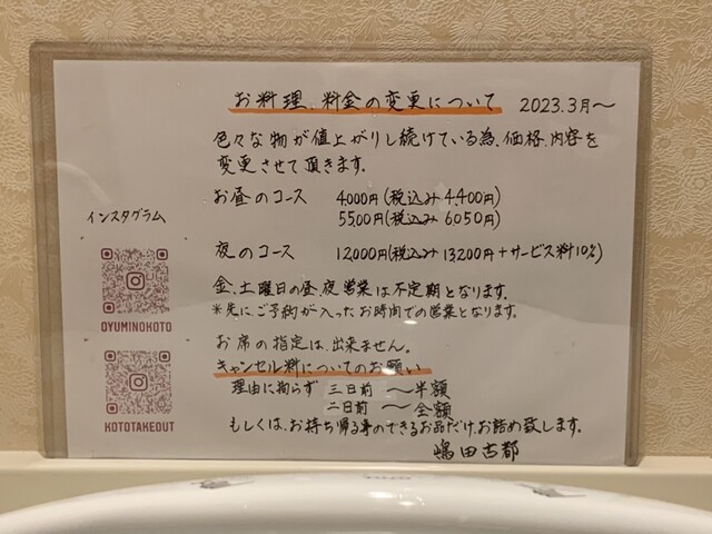 昼、夜の営業時間の最新情報はインスタグラムにてお知らせしております。