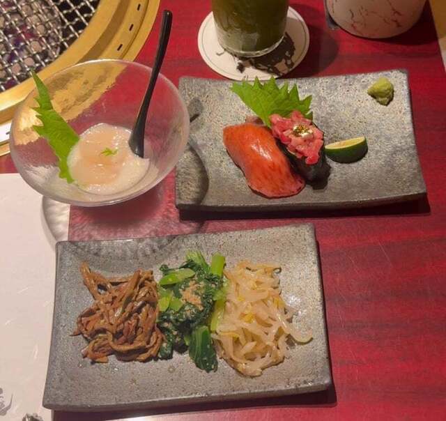 将泰庵では黒毛和牛を厳選、プレミアムな焼肉をご堪能頂けます。記念日や接待におすすめ【将泰庵泰雅コース】¥10,450(税込み)和牛の炙り肉寿司とユッケ軍艦、史上最高のサーロイン、霜降りロースすき焼きなど、将泰庵の魅力を詰め込んだイチオシの焼肉コースです。会食や接待など、ビジネスシーンでのご利用を始め、特別な日のお食事にご利用ください。