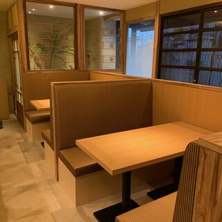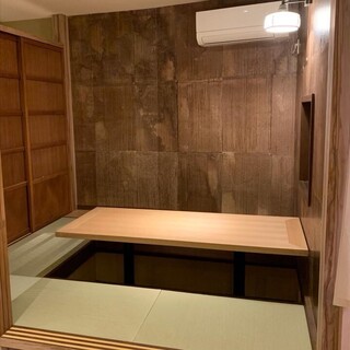 和モダンテイストの店内は、玄関は古民家材のドアを使用し、入口の紅葉が季節によって色づく赴きある空間が広がります。カウンターの奥には伊万里焼きの大皿が飾られており、また壁の墨の部分には和紙を採用するなど、"和"を感じながらゆったりとお過ごしいただけるようこだわりました。外から中が見える店内は、掘りごたつも備えた明るく落ち着いた雰囲気。心和む癒しの空間で、ゆったりと美酒美食をご堪能ください。