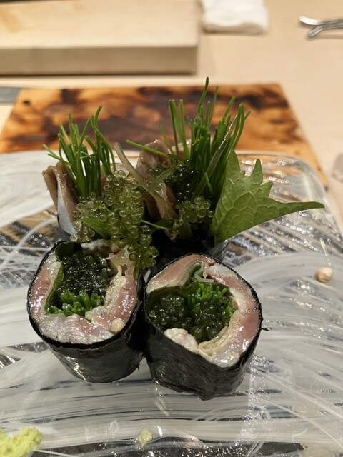 当店のドリンクは、和食によく合う日本酒がメイン。常時ご提供する数種類に加え、秋は「ひやおろし」など、その季節で一番美味しい味わいをお楽しみいただけます。もちろんワインやウィスキーなど、日本酒以外のお酒もラインナップ。お鮨と相性の良いお酒とのペアリングも可能ですので、ぜひお気軽にお問い合わせくださいませ◎