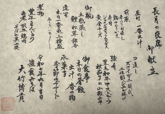 ◆夜席(土日祝)   17:00/19:30   9,900円(税込10,890円)