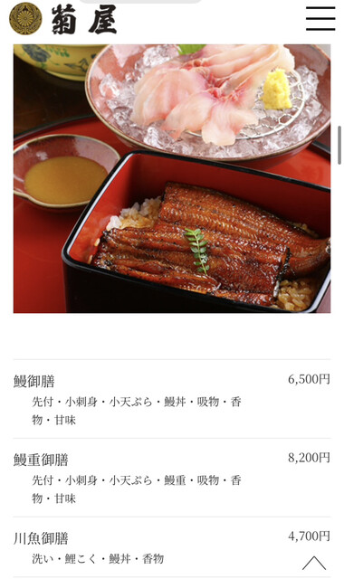 風情を感じる門前町の日本建築で老舗の味をお楽しみ下さい。国産の焼きたての鰻の他、川魚、刺身バラエティー豊かな菊屋の料理をどうぞ。外国人のお客様にも好評です。慶事・法事・接待・ゴルフ帰りにもどうぞ。10月1日以降もお値段据え置き。クレジットカード他各種キャッシュレスもご利用いただけます。