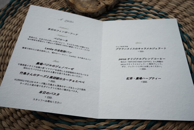 フィンランド語で「素」を意味するレストラン。KURKKU FIELDSの有機野菜や水牛のモッツァレッラチーズをはじめ、地元で水揚げ・直送される房総の地魚など、その時々の旬の食材を用いたお料理をご提供しております。日常の喧騒から離れた自然の中で、自然と食の循環を感じる食体験をお楽しみください。