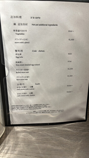 • 日本料理、かに、天ぷら