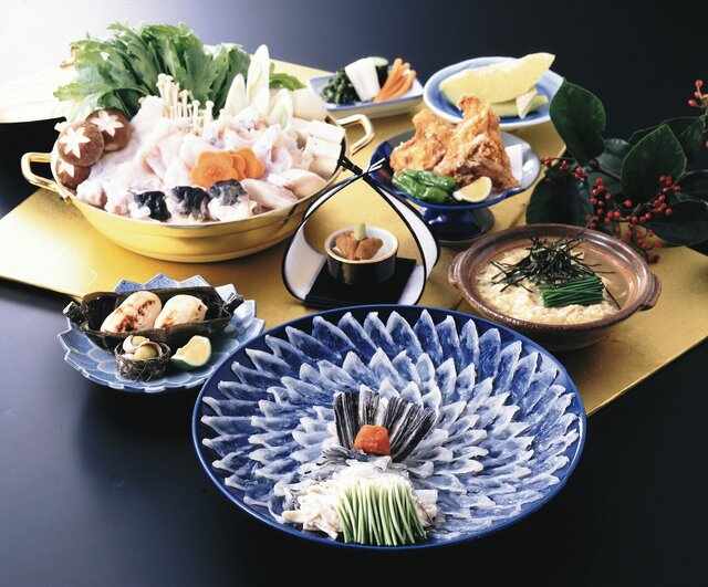 下関南風泊り市場から、1年を通して新鮮な玄界灘産"天然とらふぐ"を仕入れているため、季節を問わず良質なふぐ料理がお召し上がりいただけます。おすすめは、ふぐの歯ごたえと旨みが存分に味わえるお刺身。コース料理では、濃厚でクリーミーな「白子焼」やサクふわ触感の「ふぐ唐揚げ」など、種類豊富なふぐ料理をお愉しみいただけます。コースも幅広くご用意しておりますので、会食や接待などにご活用ください。