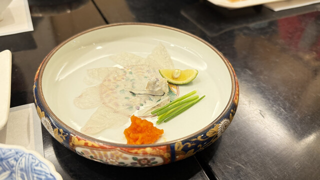 まるで芸術品のような美しい上質なとらふぐを、目と舌でご堪能
