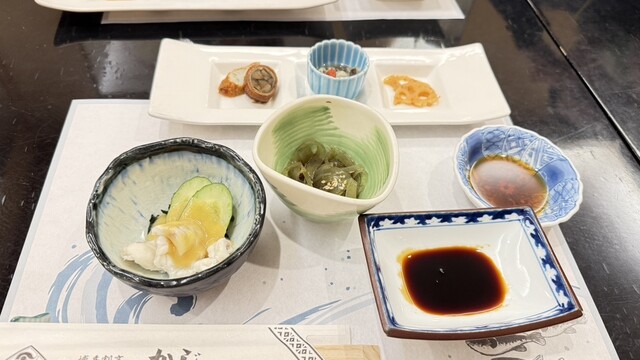 店内に入ってすぐ広がるのは、大きな生け簀を囲う人気のカウンター席。ご要望に応じて、活きた魚が悠々と泳ぐ生け簀から、目の前で捌くことも可能です。自慢の個室は、老舗割烹ならではの落ち着いた雰囲気。周りが気にならない完全個室のため、ごゆっくりお寛ぎいただけます。"天然とらふぐ"をはじめとした旬の海鮮料理を、心癒される和空間で存分にご満喫ください。