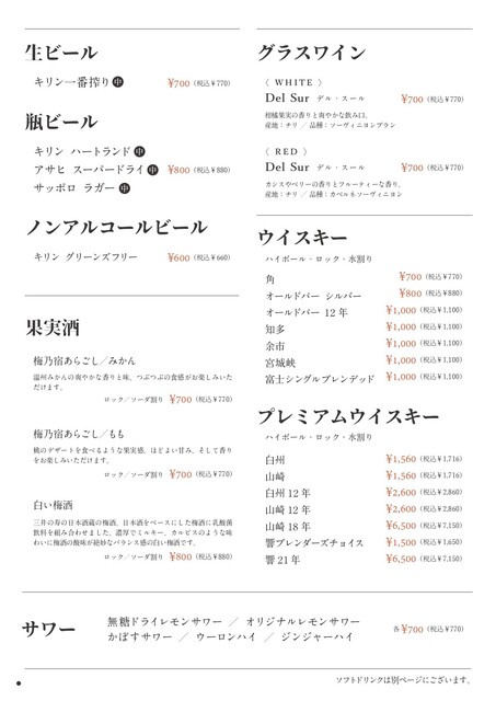 L.O. 料理22:00 ドリンク22:30