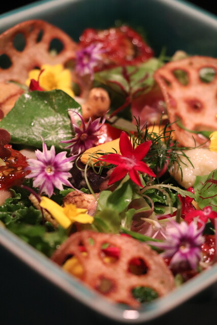 オーガニックベジタブルアートと魚介のコース5品