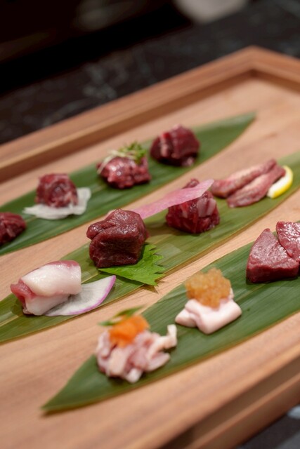 艶やかな雰囲気を味わいつつも、カウンターならではの臨場感と、スタッフとの会話によってリラックスできる落ち着いた空間へと変わる。「特別感」と「華やかさ」の非現実的な空間で味わう特別な馬肉料理をご堪能下さい!
