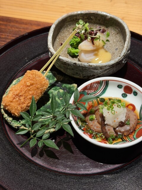 壱岐出身の店主の中山です。夫婦で営業しているお店です。「日本食の喜びと日常にハレを」をコンセプトにし、奇をてらい過ぎない日本食の喜びを感じていただき、皆様の日常に少しの贅沢や特別感を感じていただけるようなお料理を目指しご提供しております。一斉スタートなど行なっておりません。ゆったりとお客様同士の会話を楽しみながらお食事をお楽しみください。お料理は月替わりなのでぜひお楽しみください。
