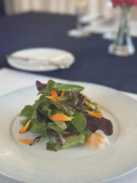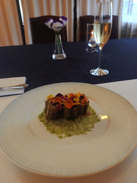 「宗像という土地に合わせたフランス料理を作る」というシェフの思いが込められています。天然魚のみをみなさまにご提供しています。その魚の種類によって、燻製、ムニエル、ポワレ、スープなど最適な調理方法を選び、最高の状態でお楽しみいただいています。魚は店に近接する、福岡有数の漁港である「鐘崎漁港」から仕入れて使用。 「土地の味」を活かした食材を選んでいます。料理に合わせたソムリエ厳選ワインもお楽しみに。