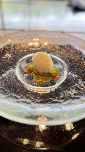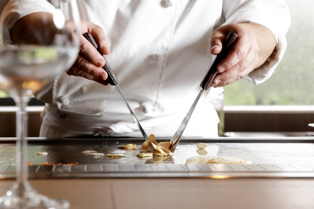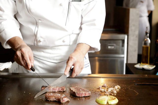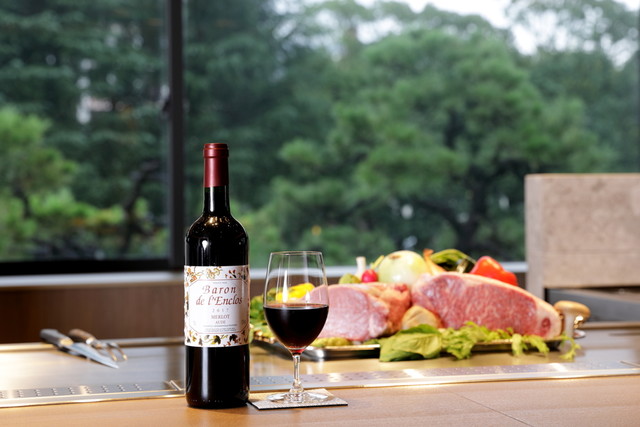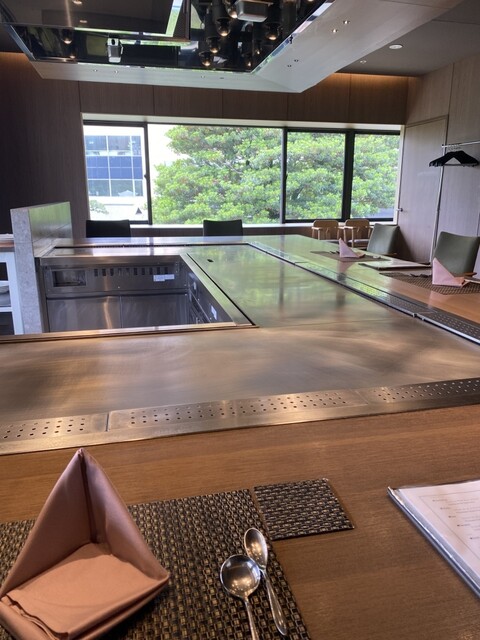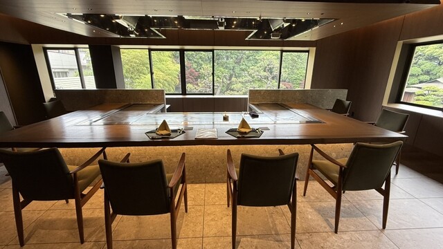 ホテル内の日本庭園が眼下に広がる特等カウンターでたのしむ鉄板焼き