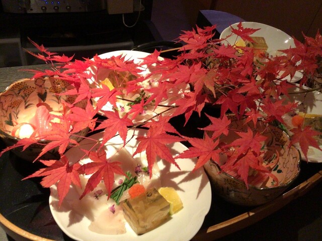 余計な装飾を排したシンプルな暖簾をくぐると、BGMにジャズが流れる和やかな空間が客人を迎える。店内の中央にはバーカウンターが設えられており、日本酒からワインまで多彩な銘酒を揃える。4席のみのカウンターは、お任せコースを味わうための特等席。眼前で繰り広げられる包丁さばきや気さくな店主との会話を楽しみながら、割烹の醍醐味に酔いしれたい。店内の奥には個室が配されており、ハレの日などの特別な場面を彩る。