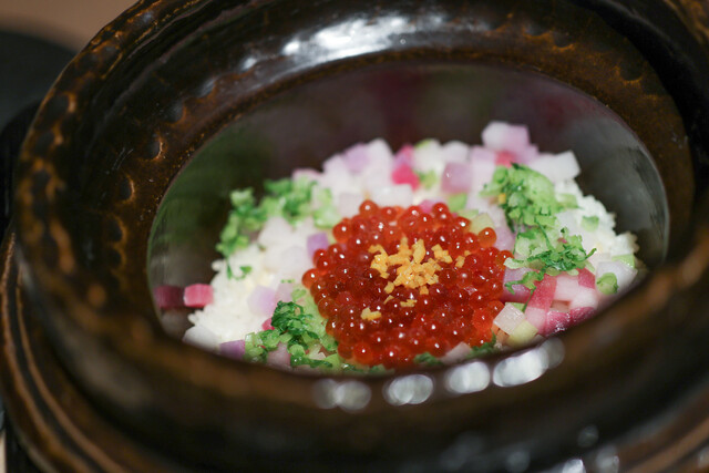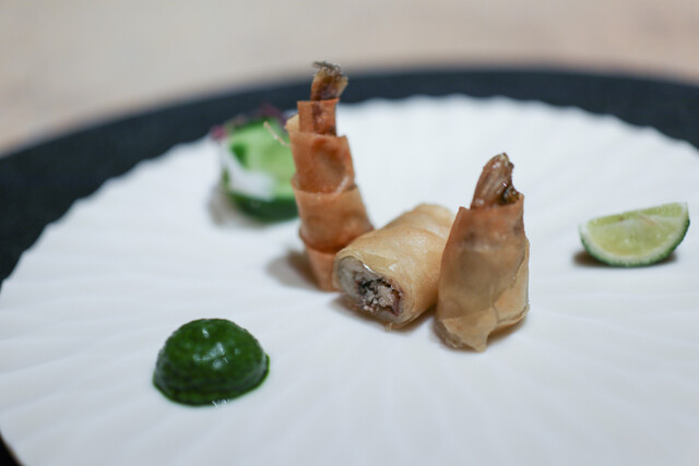 朝食は8:00or8:30。この日は羽田17:30フライトなので早めの8:00で。 朝日が爽やかなダイニング。 朝食は村田経博シェフ、スーシェフっぽかった女性はおられず、3番手っぽかった若手男性シェフが取り仕切るようです。 メニューのタイトルは「天地始粛(てんちはじめてさむし)」 七...