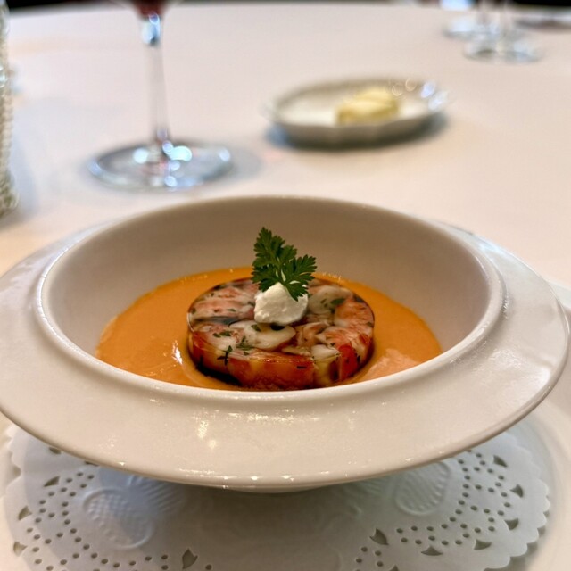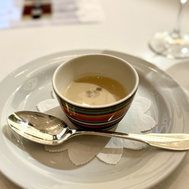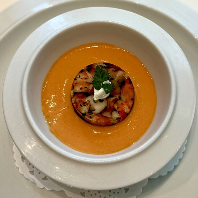 OZAWAが追求する日本人好みのフレンチ。バターやクリームをほとんど使わず素材本来の旨味を引き出す調理スタイルがそのルーツ。写真の「オマール海老の茶碗蒸し」はまさにそれを体現した当店のスペシャリテ。オマール海老を丸ごと使い、時間をかけじっくりと煮詰めて作るソースは、旨味が凝縮された風味豊かな味わいが特徴です。