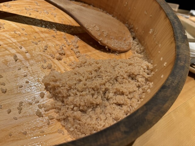 440年の歴史を誇る「尾道造酢」の酢を、シャリをはじめ、さまざまな場面で使用しています。ダイダイの皮で造った酢は、ソーダ割りや水割りで楽しむウェルカムドリンクとして提供。食事のはじまりを彩ります。