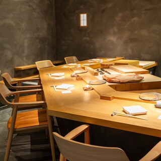 カウンター7席のみ。シックな店内では、7席のカウンターに囲まれた付け場が美食の舞台です。地元の家具店「マルニ木工」の「HIROSHIMA」シリーズの椅子を備えるなど、空間づくりの工夫が際立ちます。
