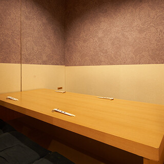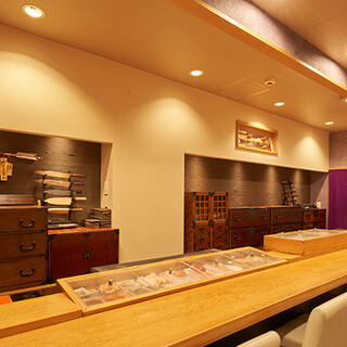 寿司店ながら、どなたでもカジュアルに楽しめる雰囲気も魅力。店内には、接待にも最適な個室をご用意し、3つの個室をすべて繋いで、最大18名様までご案内可能です。また28名様までの貸切も可能ですので、道外からの社員旅行、会社の慰安や季節の宴会などにも最適。目の前にネタケースが設置されたカウンター席は、お客様自身でネタを見て選んでいただける特等席です。至福のひと時を心ゆくまでどうぞ。