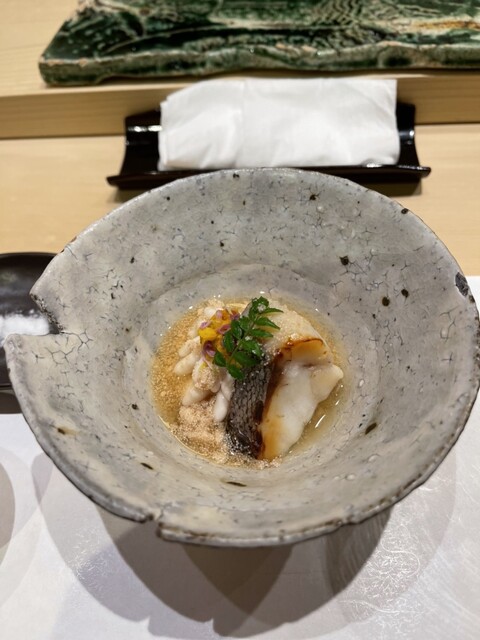『鮨西光』でご提供しているのは「おまかせ」だけ。そして、1つのネタを1貫のみご提供しております。他のお料理もあまり多くを盛り付けず、控えめ。その理由は、様々なお料理を少しずつたくさん味わっていただきたいから。「もう少し食べたい」と思うと、より後を引くのです。その状態で次のお料理、また次のお料理へと移ることがご満足いただける秘訣だと考えております。珠玉のお料理を少しずつゆっくり味わう至福のひと時を。