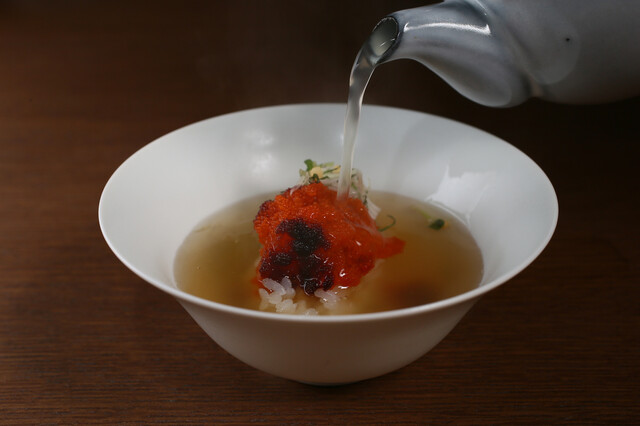 店名通り、自慢のお出汁をお楽しみいただけるよう出汁茶漬けをご用意しております。ほっと一息つくような〆をぜひお召し上がりください。