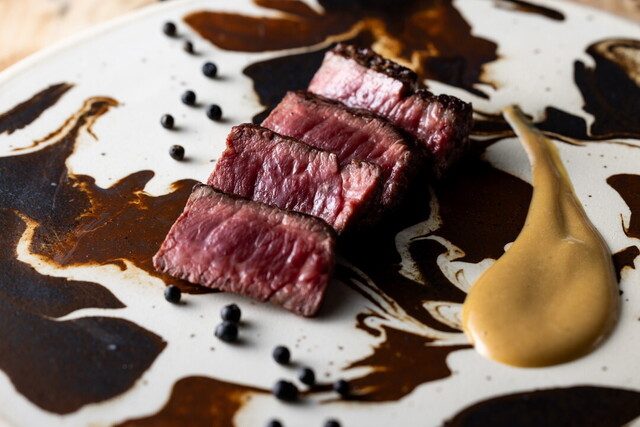 落ち着いた大人の雰囲気漂うシックな店内。お席はクリアブラックのレジンにこだわった特注カウンター席と、プライベート感を大切にされる方でもゆったりと寛げるテーブル席をご用意しました。どのお席からも炉端で焼いている様子をご覧いただけるため、大切な方をもてなしたい接待やお誕生日、記念日など特別なシーンにもおすすめです。もちろんカジュアルなシーンにもぴったりですので、お気軽にお立ち寄りくださいませ。