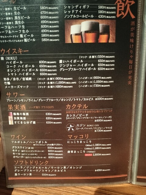 日本酒あり、焼酎あり、ワインあり、カクテルあり、日本酒にこだわる、焼酎にこだわる
