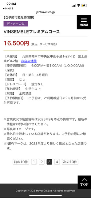 カード可(Diners、VISA、Master、JCB、AMEX)
