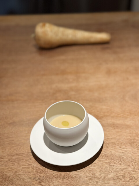 白壁が美しい外観の『ラ・ターチ』。一歩足を踏み入れると、ナチュラルで広々とした空間が広がります。木の温もりに溢れ、心が解放されるような雰囲気です。まっすぐの一枚板を使用したカウンターの向こうにいる、いつも気さくなシェフは、ミシュランで星を獲得した『御影ジュエンヌ』でスーシェフとして腕を磨いてきました。そこで培った技とシェフのオリジナリティが融合したフレンチをお愉しみください。三宮の新しい名店です。